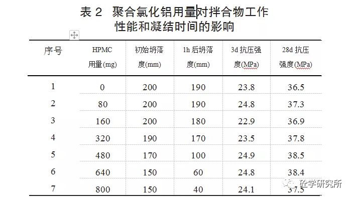 试验结果,从混凝土的强度结果来看,微量的聚合氯化铝对混凝土的强度影响并不明显。聚合氯化铝对混凝土拌合物工作性能影响较大,微量的聚合氯化铝就可以导致初始坍落度明显下降,坍落度经时损失更为严重。